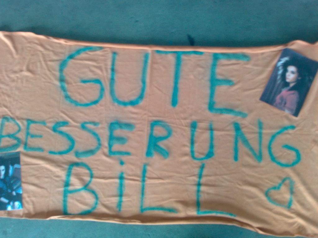 O Bill tem de ser visto por um medico várias vezes por dia, mas fiquem certos de que ele tem os melhores médicos da Alemanha. Temos falado sobre tantas coisas nestes dias, pois todos nós estavámos realmente assustados. Mas acima de tudo nós sentimos tanta pena por vos termos desapontado ao cancelar o resto da tour. Sentimos que vos desiludimos a todos. O Bill em especial sente-se muito mal com isto, e eu tento tranquilizá-lo dizendo que ninguém teve culpa.