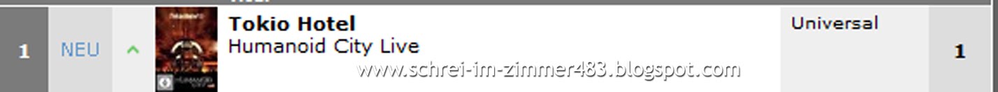 O Álbum dos Tokio Hotel "Humanoid City LIVE" encontra-se em 7ºlugar nas tabelas de vendas na Alemanha.